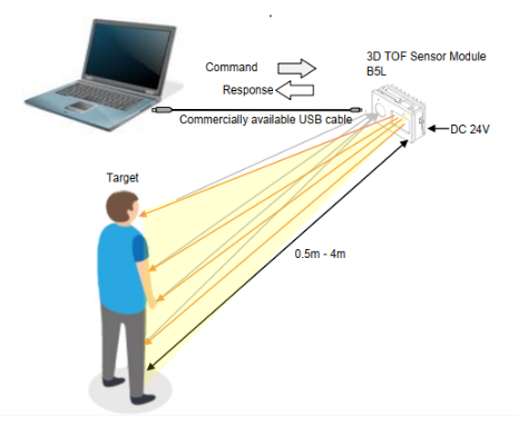 TOF是飛行時間(Time of Flight)技術的縮寫,即傳感器將調制過的近紅外光以光脈沖的形式不斷發送出去,遇到物體后會產生反射,當傳感器接收到從物體返回的光脈沖時,通過計算光線往返的飛行時間或相位差得到待測物體的3D深度信息或目標物距離。歐姆龍新推出的B5L系列傳感器模組是一款高精度3D TOF測距傳感器,除了可用于護理監控,也可應用于服務類機器人、倉儲物流、自動門或電梯等產品。