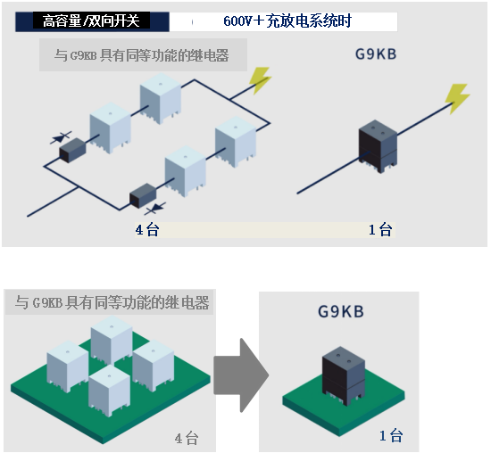 ● 在高電壓600V的系統(tǒng)上,可通過1臺(tái)繼電器實(shí)現(xiàn)充放電時(shí)直流電流的開關(guān)控制和安全阻斷。
