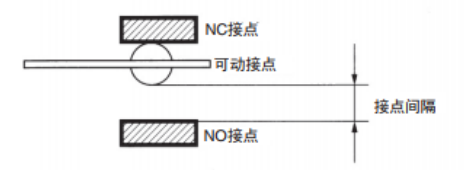 接點間隔是微動開關的設計目標,歐姆龍根據(jù)市場要求,將接點間隔定為0.25mm、0.5mm、1.0mm、1.8mm:4種,一般接點間隔的標準為0.5mm。