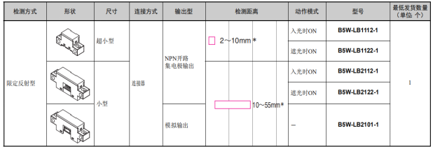 歐姆龍限定反射型傳感器B5W應(yīng)用在縫紉機(jī)中,這個系列的傳感器具有哪些特點(diǎn)呢,如下: