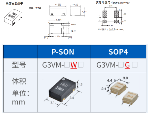 僅有3.4*2.1*1.3mm,僅為SOP4引腳封裝面積的1/4,可以實現更高密度的貼片安裝,實現更小型化,更多通道,更多功能;