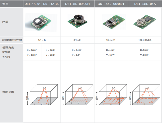 物體檢測:可以針對對象物進行定點精確檢測,無需接觸即可測量對象物的溫度,適用于工業設備,非接觸溫度計,冰箱,微波爐,電磁烹飪爐,等領域。