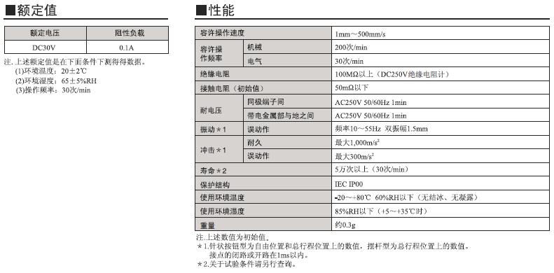 D3C 超級小型檢測開關 采用滑動式的超小型開關 超小型(高6×寬8×深4.2mm),輕量(約0.3克),3mm的長行程。 由于是滑動方式,所以短路、非短路的切換時間可根據使用用途進行選擇。