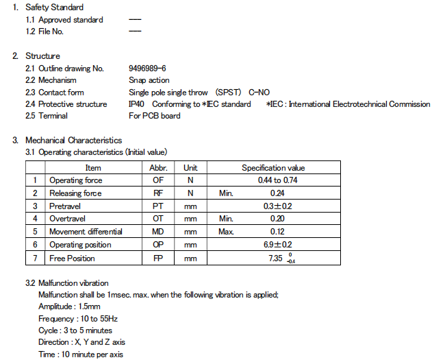 D2FC-F-7N, 克力為:60+/-15G,壽命為500萬次;