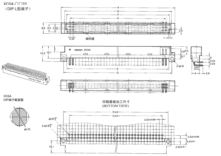 XC5A-3222 2列型插頭DIN板對板連接器