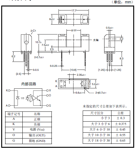 光電IC輸出型微型光電傳感器[透過型] 受光元件與增幅回路內(nèi)置于一個芯片 受光元件中內(nèi)置有溫度補(bǔ)償回路 適用電源電壓為DC4.5 ~ 16V 可直接連接C-MOS、TTL 高分辨率(狹片寬度 0.5mm) 遮光時ON型:EE-SX3070